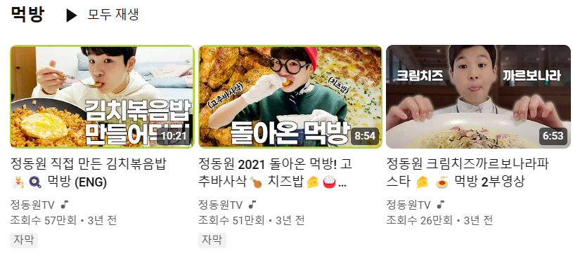 정동원 유튜브 TV출연 방송, 신곡, 먹방, 사랑의 콜센터, 인기동영상, 정동원 커버영상, 노래 듣기 등 다양하게 보실 수 있습니다.