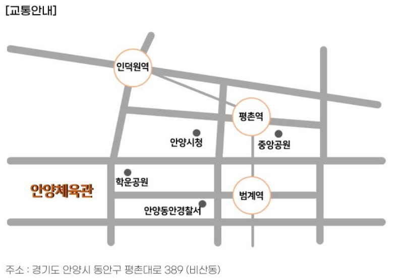 장소 : 안양체육관 (경기도 안양시 동안구 평촌대로 389 비산동)